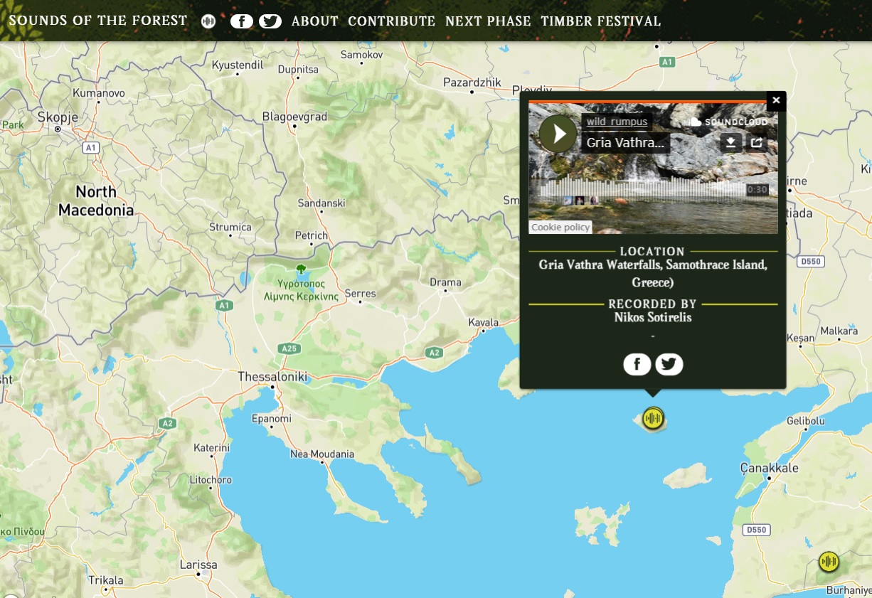Μπορείτε να ακούσετε τους ήχους από τη Σαμοθράκη, που είναι από τις ελάχιστες περιοχές της Ελλάδας που συμπεριλαμβάνονται στον εν λόγω διαδραστικό χάρτη, στο Sounds of the Forest εδώ.