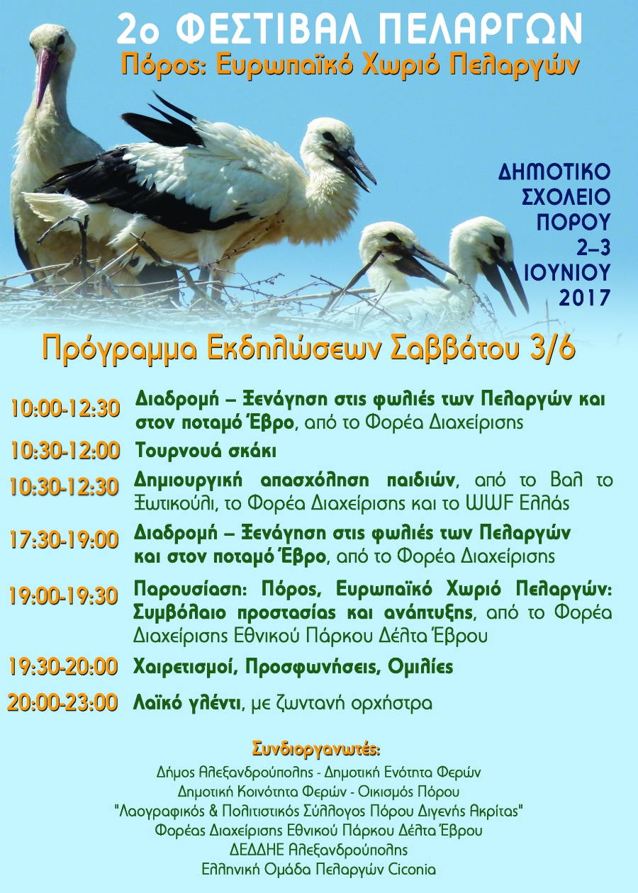 Θα πραγματοποιηθούν ξεναγήσεις στις φωλιές των πελαργών, δημιουργική απασχόληση, εκθέσεις - παρουσιάσεις, τουρνουά ποδοσφαίρου και σκάκι, περιήγηση με κάρο και γαϊδουράκια, Θρακιώτικοι χοροί και λαϊκό γλέντι όπως και πολλές άλλες δράσεις.