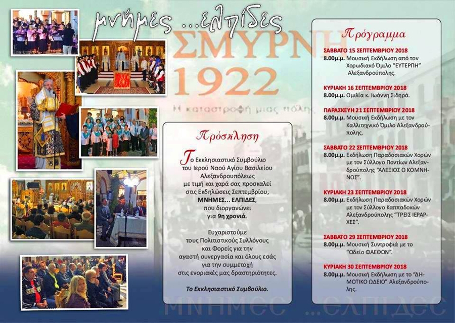 Για ακόμη μια χρονιά διοργανώνονται στην Αλεξανδρούπολη οι πολιτιστικές εκδηλώσεις «Μνήμες…ελπίδες».