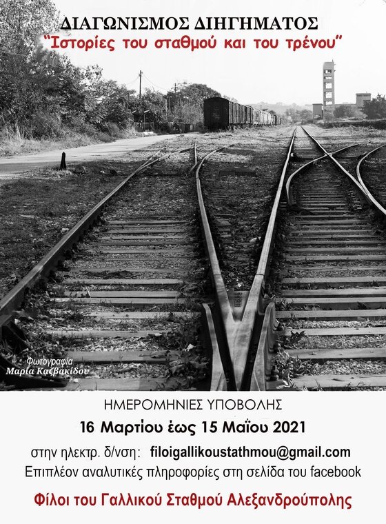 Με αφορμή το «Ευρωπαϊκό έτος Σιδηροδρόμων» και τον εορτασμό των 150 χρόνων του σιδηροδρόμου στην Αλεξανδρούπολη, η ομάδα "Φίλοι του Γαλλικού Σταθμού Αλεξανδρούπολης" διοργάνωσαν έναν πρωτότυπο διαγωνισμό διηγήματος με θέμα «Ιστορίες του σταθμού και του τρένου» για μικρούς και μεγάλους!