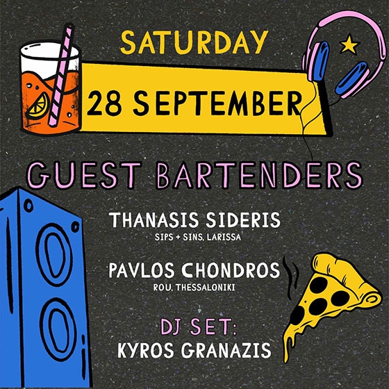 - Ο Θανάσης Σιδέρης από το "Sips + Sins" της Λάρισας μαζί με τον Παύλο Χονδρό από το "Rou Leisure Gatherings" της Θεσσαλονίκης, θα αναλάβουν τα κοκτέιλ, ετοιμάζοντας ιδιαίτερες γεύσεις για τους λάτρεις του καλού ποτού.