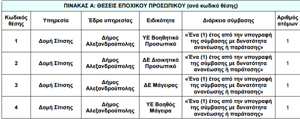 Ανακοινώθηκε η προκήρυξη πρόσληψης με σύμβαση εργασίας ιδιωτικού δικαίου ορισμένου χρόνου για την υλοποίηση της πράξης "ΞΕΝΙΟΣ ΖΕΥΣ_ ΔΟΜΗ ΣΙΤΙΣΗΣ, ΣΤΟ ΔΗΜΟ ΑΛΕΞΑΝΔΡΟΥΠΟΛΗΣ" που εντάσσεται στο Επιχειρησιακό Πρόγραμμα "Ανατολική Μακεδονία Θράκη".