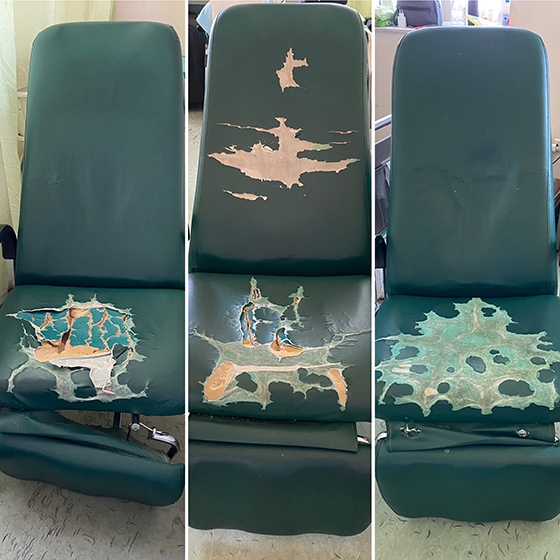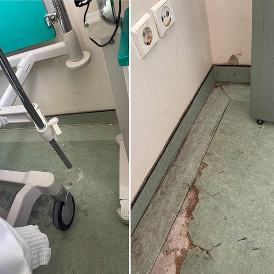 Καρέκλες αναδιπλούμενες φθαρμένες, ρημαγμένες, ξεχαρβαλωμένες και φυσικά εστίες μικροβίων. Έχουν να αλλαχτούν από τότε που εγκαινιάστηκε το νοσοκομείο.