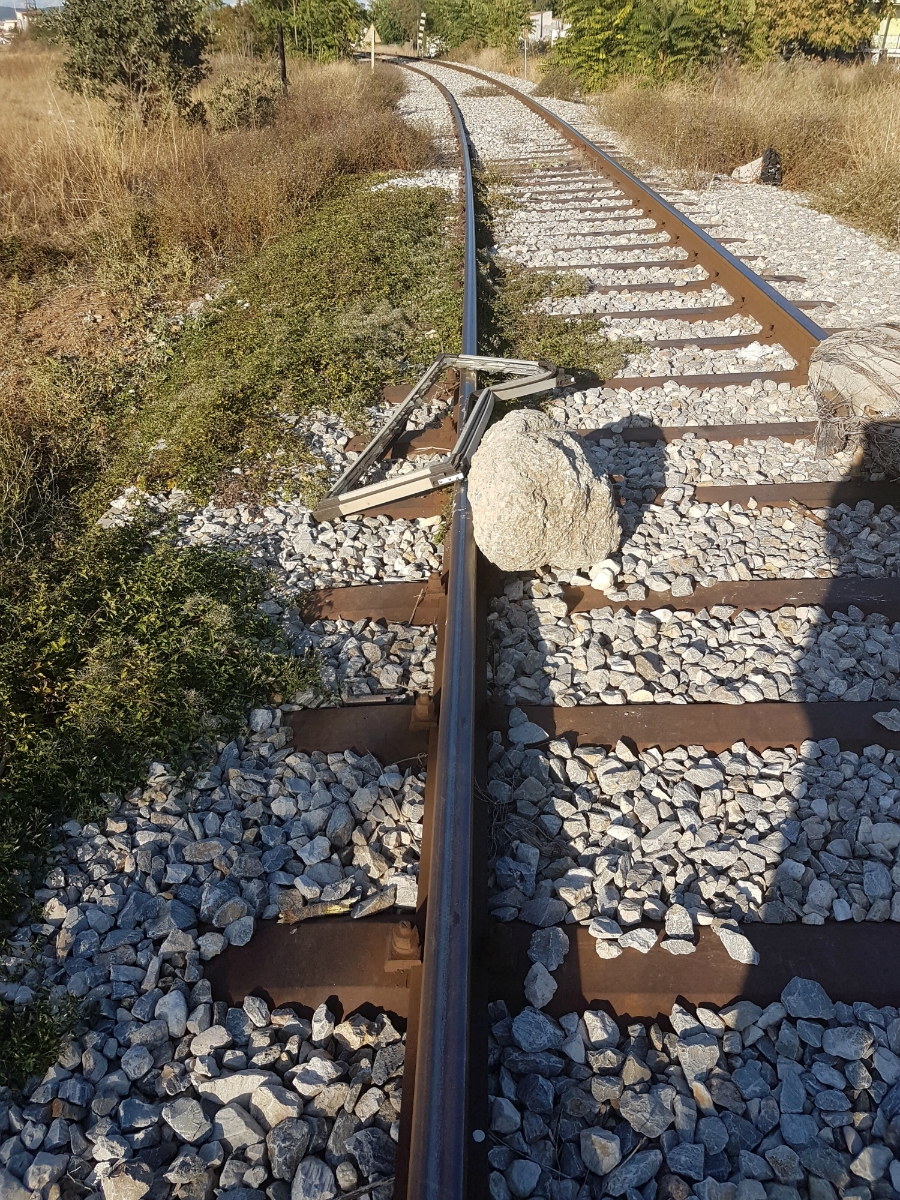 Άγνωστοι τοποθέτησαν επάνω στις γραμμές του τρένου, στην περιοχή του Αγίου Νεκταρίου, γύρω στις 16:30, χαλάσματα από κολώνες υποδομής, μπετόν αρμέ και έσπασαν τη συσκευή τροχοεπαφής έναρξης της διάβασης.