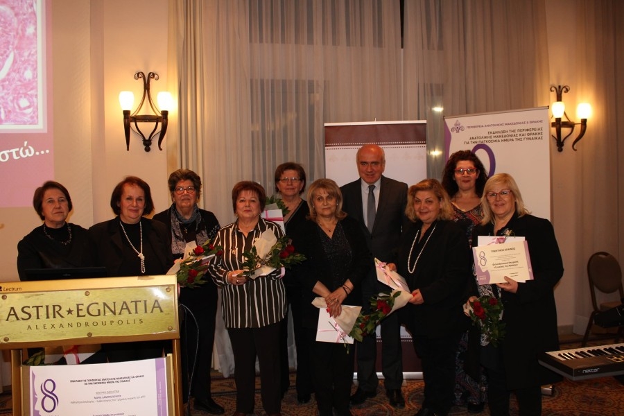 Είκοσι γυναίκες με πλούσια προσφορά στην επιστημονική, πολιτική, κοινωνική, οικονομική, πολιτιστική και αθλητική ζωή της Ανατολικής Μακεδονίας και Θράκης βράβευσε η Περιφέρεια ΑΜΘ, σε ειδική εκδήλωση που διοργάνωσε την Τρίτη 8 Μαρτίου στην Αλεξανδρούπολη, με αφορμή τον εορτασμό της Παγκόσμιας Ημέρας της Γυναίκας.