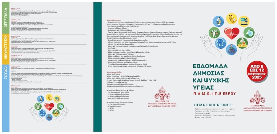 Εβδομάδα "Δημόσιας και Ψυχικής Υγείας" στην Περιφερειακή Ενότητα Έβρου - από τις 6 έως τις 12 Οκτωβρίου.