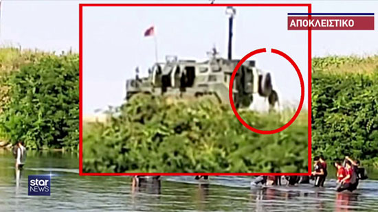 Οι πόρτες του τούρκικου τεθωρακισμένου φαίνεται να ειναι ανοιχτές και οι Τούρκοι στρατιώτες έχουν βγει έξω, όχι για να σταματήσουν τους μετανάστες, αλλά για να κάνουν περιπολία μήπως εντοπίσουν Έλληνες ή άντρες της Frontex. Σε περίπτωση που δουν κάτι, ενημερώνουν τους μετανάστες να κατευθυνθούν σε άλλο σημείο και να φτάσουν στην Ελλάδα.