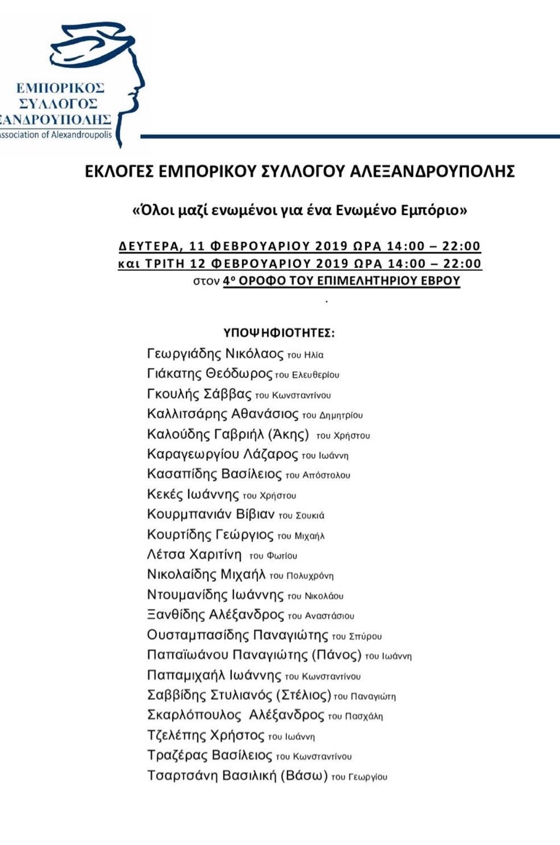 Τις επόμενες ημέρες αναμένεται να λάβουν χώρα οι εκλογές για την ανάδειξη νέου Διοικητικού Συμβουλίου στον Εμπορικό Σύλλογο Αλεξανδρούπολης.