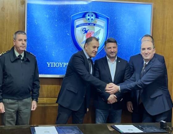 Στιγμιότυπο από την υπογραφή της σύμβασης παρουσία Υπουργών και Αρχηγού ΓΕΣ