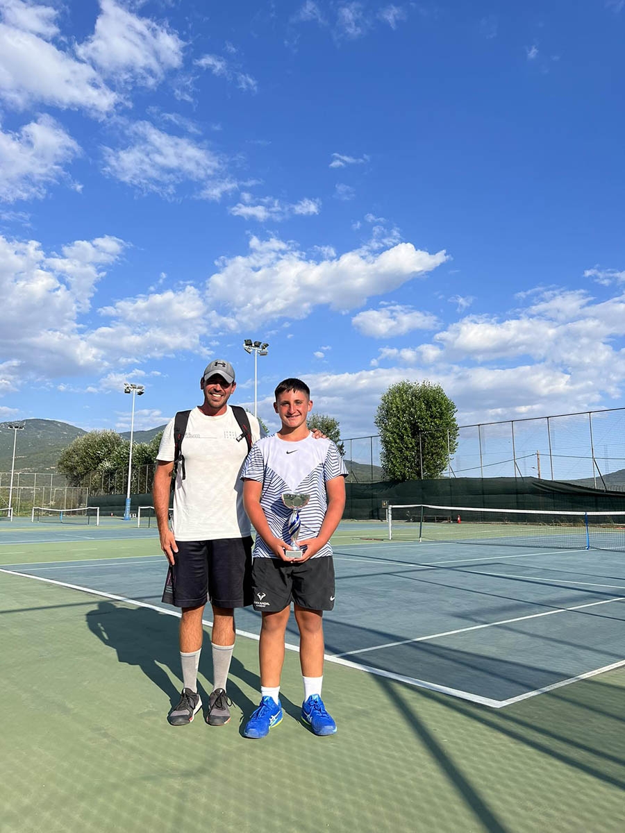 Ο νεαρός αθλητής εκτός από τις καθημερινές του προπονήσεις στον Όμιλο Αντισφαίρισης Αλεξανδρούπολης, τα Παρασκευοσαββατοκύριακα ακολουθεί ένα πολύ απαιτητικό προπονητικό πρόγραμμα στη διακεκριμένη Ακαδημία Collective Tennis School της Θεσσαλονίκης.