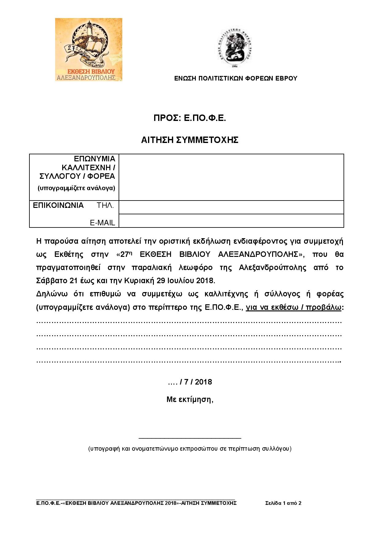 Η αίτηση της Ε.ΠΟ.Φ.Ε για συμμετοχή στην 27η Έκθεση Βιβλίου