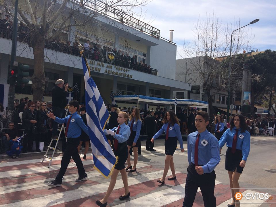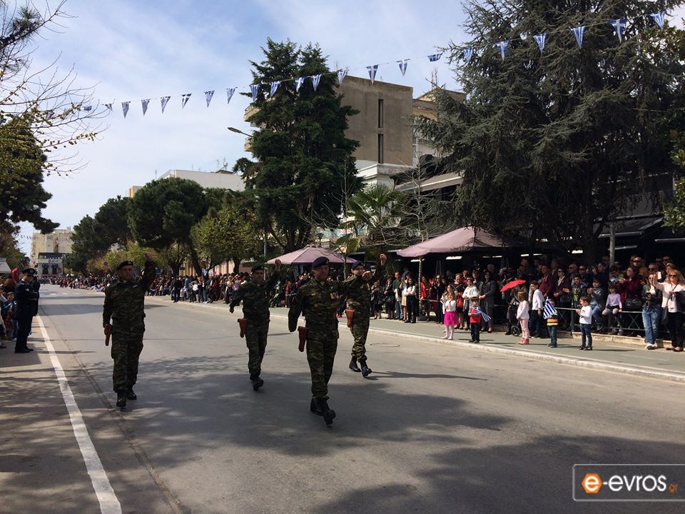 Με λαμπρότητα εορτάστηκε σε όλο τον Έβρο η επέτειος της 25ης Μαρτίους 1821 με μαθητική και στρατιωτική παρέλαση. Την παρέλαση παρακολούθησαν πλήθος κόσμου ενώ για μια ακόμη χρονιά ξεχώρισε ο Εθνικός Ύμνος από τις στρατιωτικές μονάδες. Από την πλευρά τους και τα σχολεία με τους μαθητές παρήλασαν αποδίδοντας φόρο τιμής σε όσους έδωσαν και την ψυχής τους για την πατρίδα.