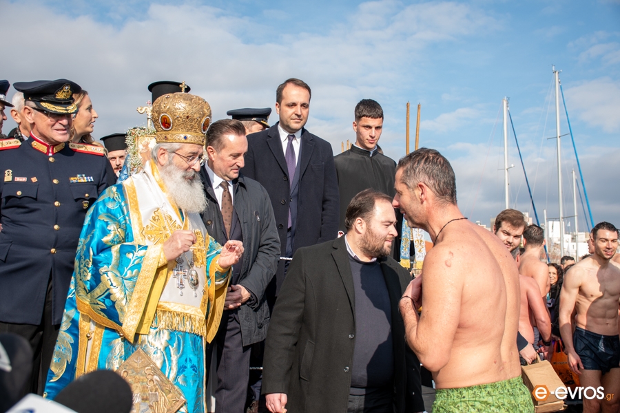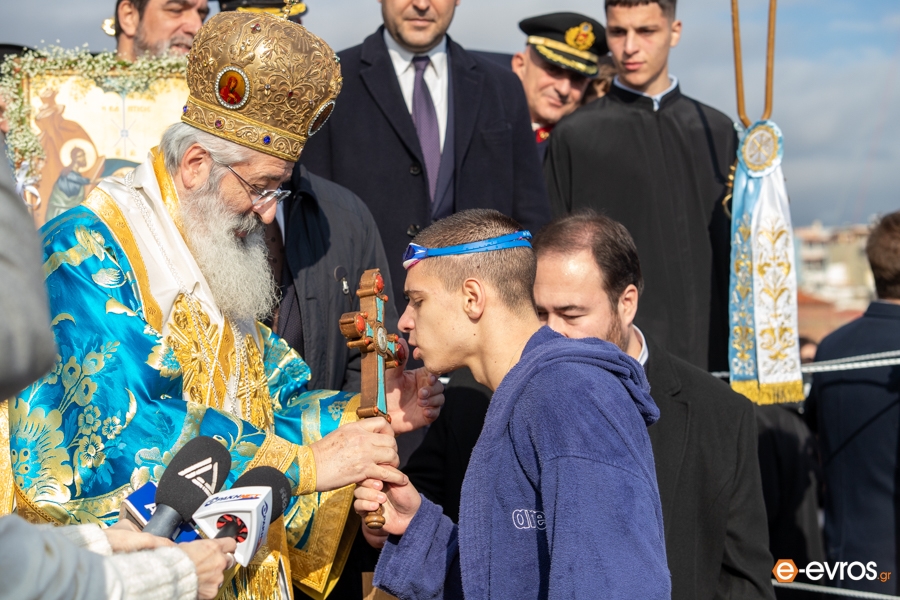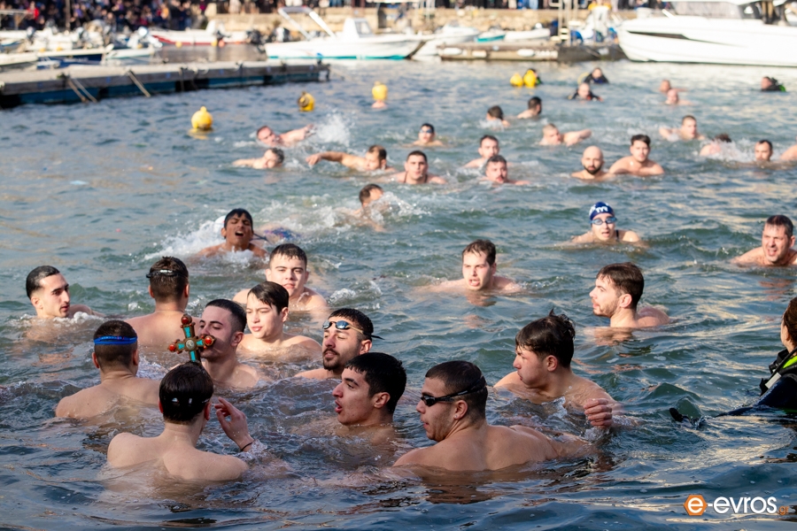 Στην Αλεξανδρούπολη τελέστηκε ο Αγιασμός των υδάτων στο λιμάνι, παρουσία εκπροσώπων αρχών και φορέων αλλά και πλήθους κόσμου, ενώ και φέτος δεκάδες κολυμβητές έπεσαν στα παγωμένα νερά του λιμανιού για να πιάσουν τον Σταυρό.