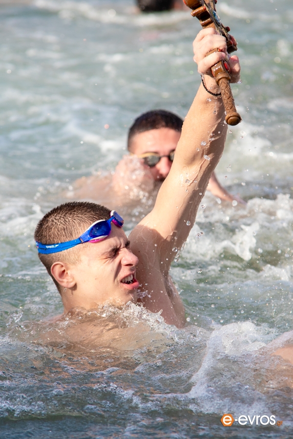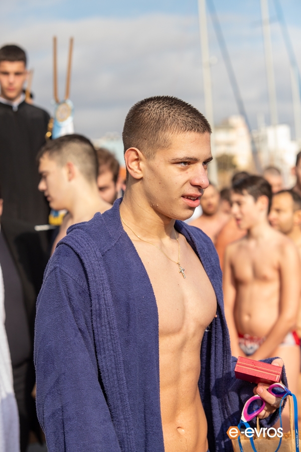 Ο τυχερός κολυμβητής για φέτος ήταν ο Αντώνης Πεχλιβανίδης ο οποίος για δεύτερη φορά βούτηξε στα παγωμένα για τον Σταυρό. Καλή φώτιση Αντώνη!