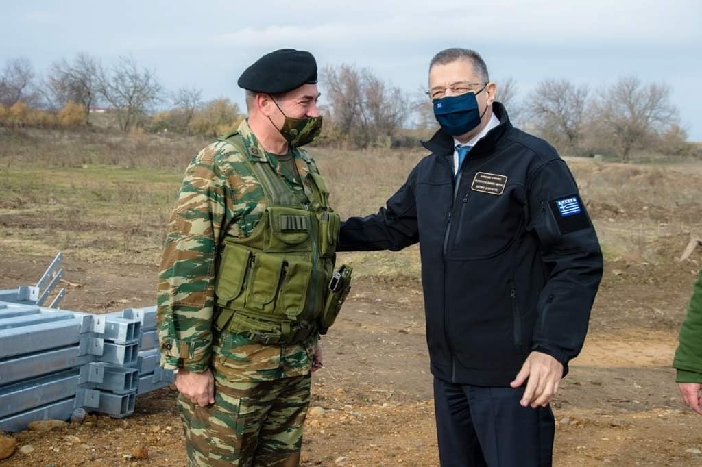 Μετέβη στο χωριό Πόρος Έβρου, όπου παρακολούθησε την εξέλιξη των εργασιών, στο πλαίσιο της συνδρομής των Ενόπλων Δυνάμεων στην κατασκευή του συνοριακού αποτρεπτικού εμποδίου (Φράκτης).