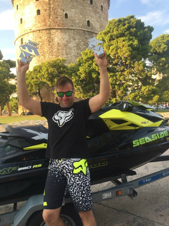 Ο Μάκης κατάγεται από τον Έβρο και μένει στην Αλεξανδρούπολη. O Αλεξανδρουπολίτης σήκωσε τα δύο κύπελλα, αφού πρώτα αναμετρήθηκε με πολλά ακόμη "jet ski".