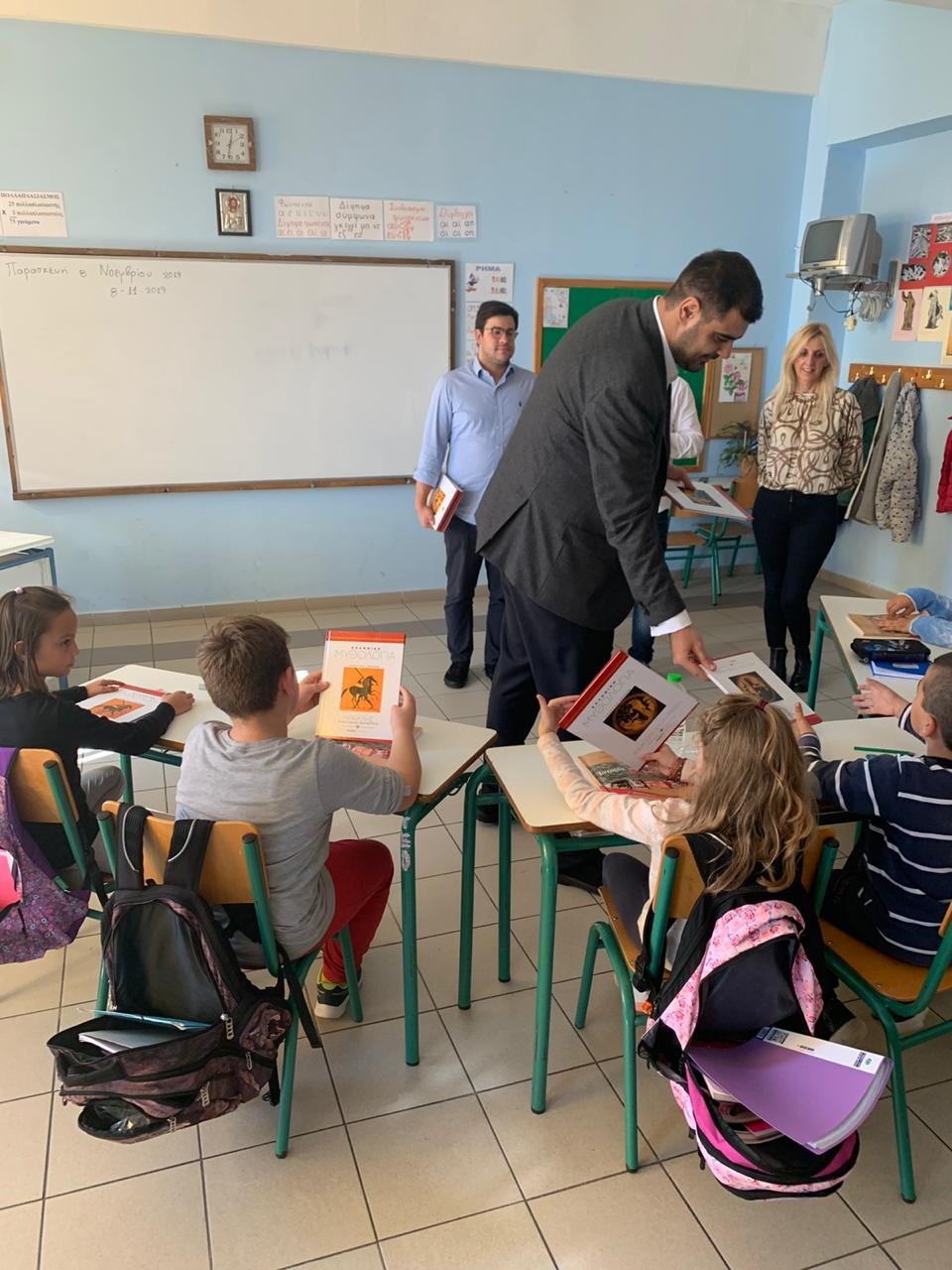 Η επίσκεψη στους πενήντα πέντε μαθητές του Δημοτικού Σχολείου Κυπρίνου, με τα ίδια τα παιδιά να μιλούν για το σχολείο όπως το ονειρεύονται, ολοκληρώθηκε με τον Πρόεδρο και τα μέλη του Εκτελεστικού Γραφείου να χαρίζουν σε κάθε μαθητή μια πλήρη έκδοση βιβλίων για την Ελληνική Μυθολογία.