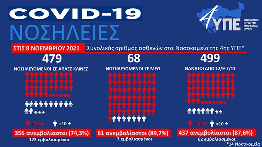Παρακάτω ακολουθεί και πίνακας της 8ης Νοεμβρίου, από τις νοσηλείες covid-19 στα νοσοκομεία της 4ης ΥΠΕ: