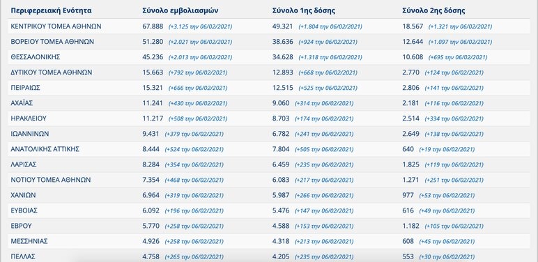Συνολικά 415.578 Έλληνες πολίτες έχουν εμβολιαστεί κατά του κορονοϊού μέχρι το Σάββατο 6 Φεβρουαρίου, όπως αποτυπώνουν τα επίσημα στοιχεία.
