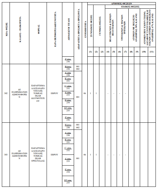 Για τον Έβρο οι θέσεις έχουν ως εξής: