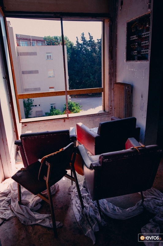 Διάσπαρτα σε όλους τους ορόφους βρίσκονται έγγραφα αλλά και φάκελοι ασθενών, ιατρικά μηχανήματα σαπισμένα, τοίχοι έτοιμοι κυριολεκτικά να πέσουν, ένα κυριολεκτικά βομβαρδισμένο τοπίο…