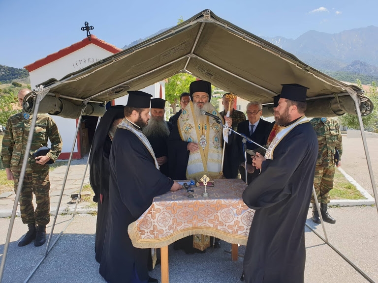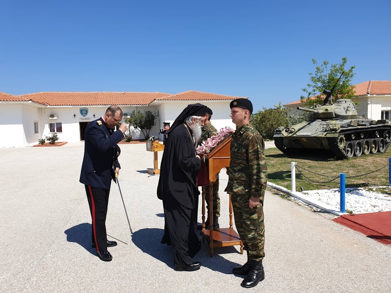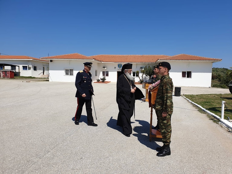 Ο Μητροπολίτης μας ευχήθηκε στον Διοικητή του Στρατοπέδου, στους αξιωματικούς, υπαξιωματικούς και οπλίτες ο Άγιος να τους προστατεύει, όπως διαφυλάττει ολόκληρη την Πατρίδα μας και τον ένδοξο στρατό της και ευχήθηκε σε όλους για τις χαρμόσυνες ημέρες του Πάσχα.