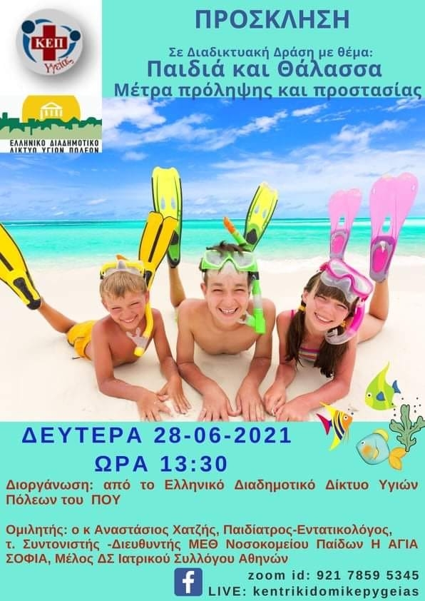 Ο δήμος Σουφλίου συμμετέχει αυτή τη φορά στη διαδικτυακή ημερίδα με θέμα «Παιδιά και Θάλασσα. Μέτρα πρόληψης και προστασίας» του Ελληνικού Διαδημοτικού Δικτύου Υγιών Πόλεων του ΠΟΥ και τα ΚΕΠ Υγείας.