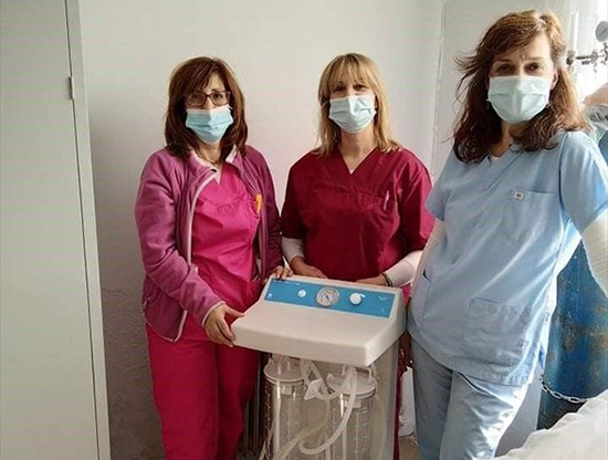Υπεύθυνος Κέντρου Υγείας Δικαίων, το μηχάνημα τροχήλατης αναρρόφησης που δόθηκε από το Μαζί για το Παιδί.