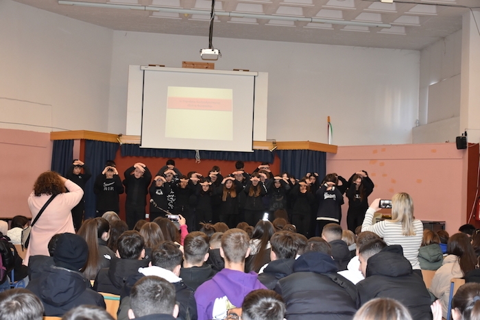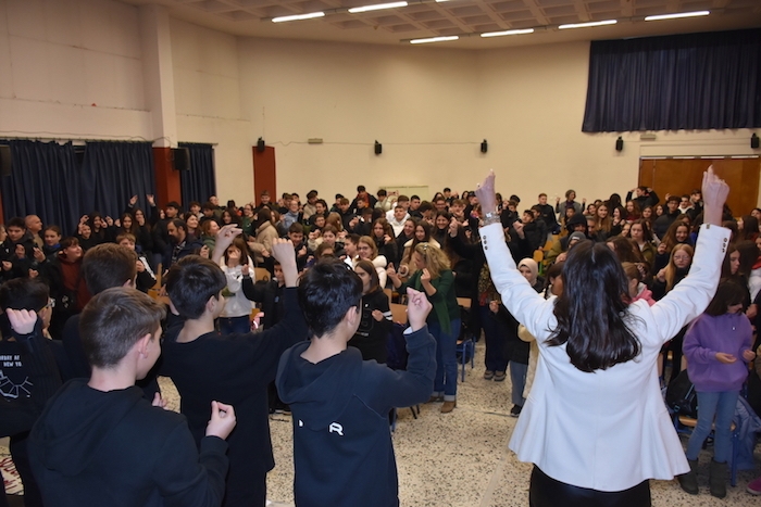 Στη συνέχεια επισκέπτες και οικοδεσπότες μαθητές/τριες έδωσαν ραντεβού στον χώρο κάτω από τον Φάρο, που με μεγάλη χαρά παραχώρησε ο Οργανισμός Λιμένος Αλεξανδρούπολης, για μια δράση έκπληξη. Οι μαθητές/τριες -παρά το τσουχτερό κρύο και τους θυελλώδεις ανέμους- σχημάτισαν με τα σώματά τους το λογότυπο της δράσης για τα «5άρια της ΑΜΘ», που αποθανατίστηκε σε μια υπέροχη εναέρια λήψη. Φυσικά, δεν θα μπορούσε να λείπει η αναμνηστική φωτογραφία στα σκαλοπάτια, κάτω από το Φάρο.