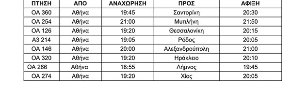 Παράλληλα, η μεταφορά του Αγίου Φωτός το Μεγάλο Σάββατο, θα γίνει και με τις 8 προγραμματισμένες πτήσεις της AEGEAN και της Olympic Air προς Σαντορίνη, Μυτιλήνη, Θεσσαλονίκη, Ρόδο, Αλεξανδρούπολη, Ηράκλειο, Λήμνο και Χίο, ως κάτωθι: