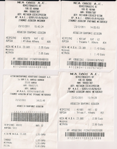 Για 214χλμ Λαμία - Αθήνα, 8,50 ευρώ.