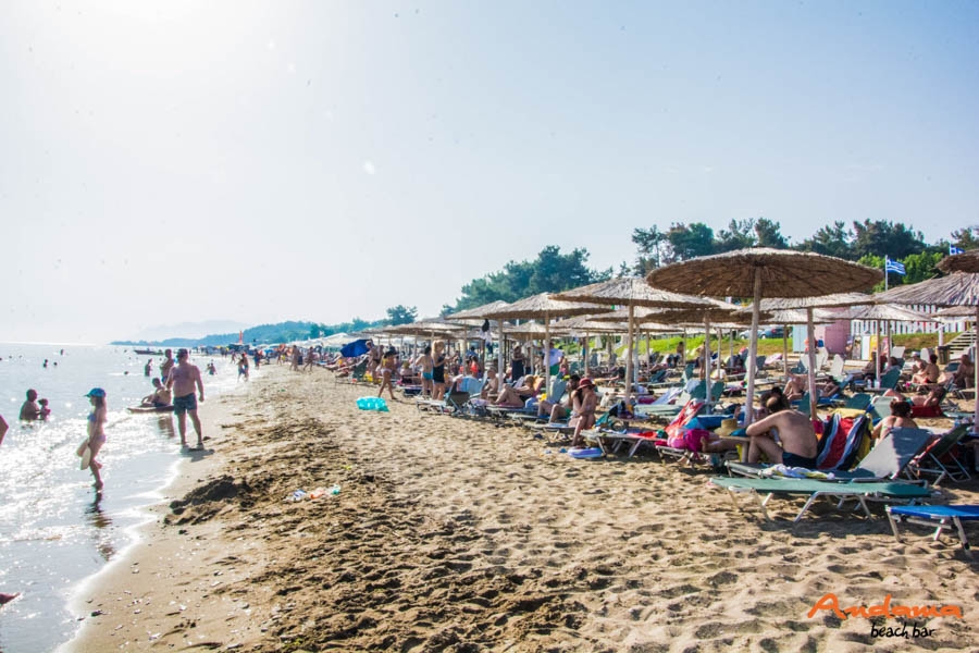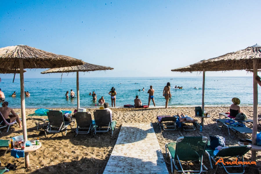 Στην καταγάλανη παραλία της Αγίας Παρασκευής απολαύστε το θαλασσινό σας μπάνιο χαλαρώνοντας στις άνετες ξαπλώστρες του beach bar "Andama".