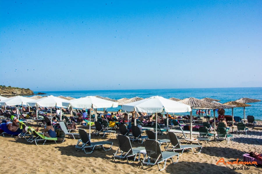 Το beach bar "Andama" με τα δροσιστικά κοκτέιλ του σας υπόσχεται ένα μαγευτικό ταξίδι στον κόσμο της χαλάρωσης. Ανοικτά από αρχές Ιουνίου μέχρι τον Σεπτέμβριο σας περιμένει από το πρωί έως τα βράδυ για ξεφάντωμα αλλά και χαλάρωση κάτω από τις σκιερές εγκαταστάσεις του.