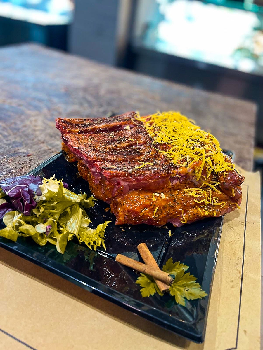 Στην πλούσια γκάμα τους βρίσκετε όλες τις κλασικές επιλογές, όπως χοιρινό, μοσχάρι, αρνάκι γάλακτος και κοτόπουλο. Προφανώς ένα κρεοπωλείο με τόσο επιβλητικό ύφος δεν θα μπορούσε να μείνει μόνο στα κλασσικά προϊόντα.