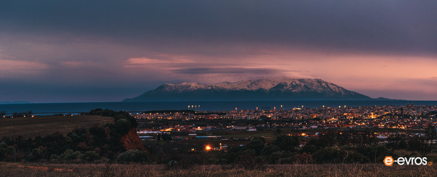 Λήψη της Αλεξανδρούπολης με φόντο τη Σαμοθράκη