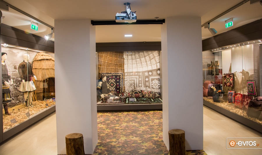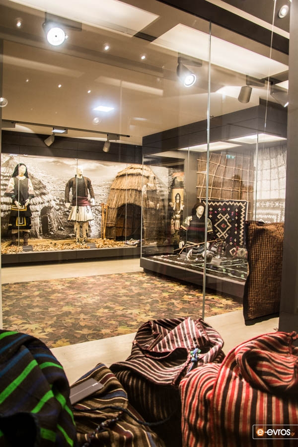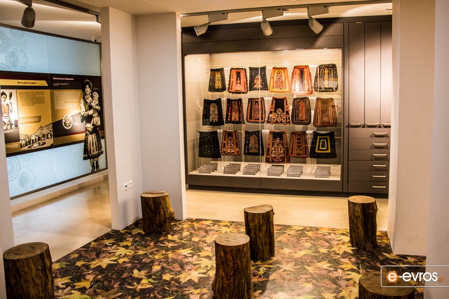 • Ο ημιώροφος φιλοξενεί μέρος από την αξιόλογη συλλογή της Ελένης Φιλιππίδη, προσωπικότητας με καθοριστικό ρόλο στη πολιτιστική ζωή της πόλης μεταπολεμικά. Στην έκθεση που εγκαινιάστηκε το 2015 παρουσιάζονται μέσα από μοναδικά εκθέματα και αναπαραστάσεις, η ζωή, οι δραστηριότητες, οι ιδιότυπες ενδυμασίες και η τέχνη των Σαρακατσάνων της Θράκης. Η συλλογή περιλαμβάνει πάνω από 1800 μοναδικά αντικείμενα, που κυρίως είναι τμήματα ενδυμασιών ανδρικών, γυναικείων, παιδικών, με σημαντικότερο την γυναικεία ποδιά, την Σαρακατσάνικη παναούλα με τους ιδιαίτερους συμβολισμούς και τα θέματα που αντιστοιχούσαν στους μεγάλους σταθμούς της ζωής της Σαρακατσάνας.