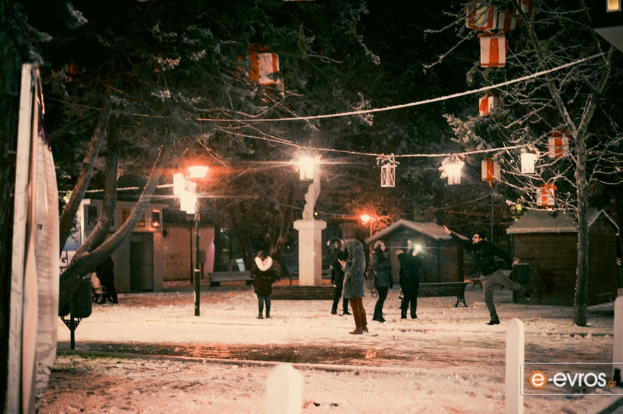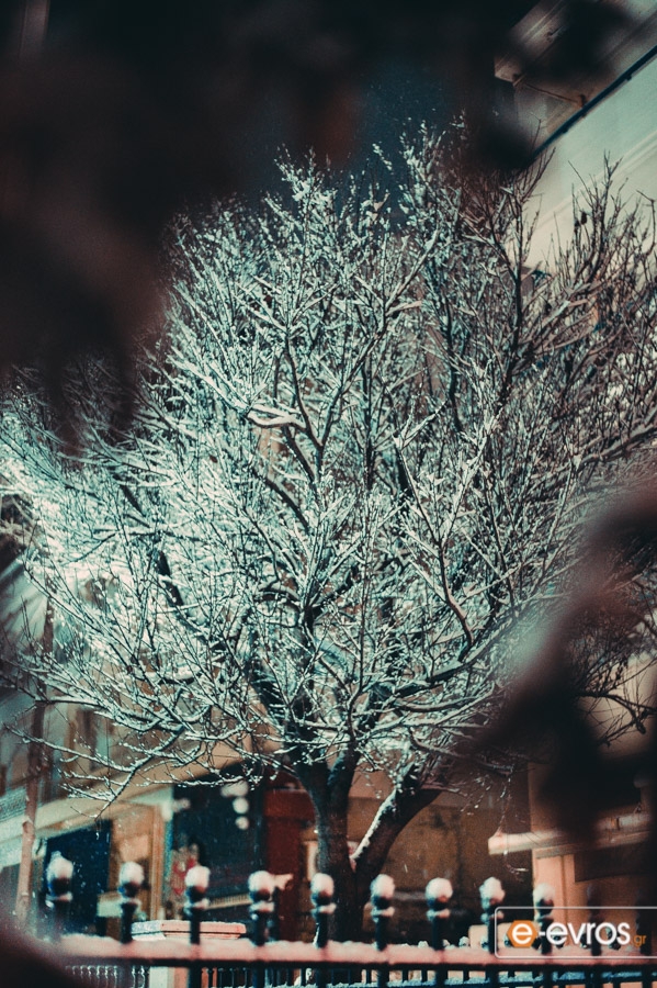 Κινηματογραφικά τοπία στην χιονισμένη Αλεξανδρούπολη τη νύχτα