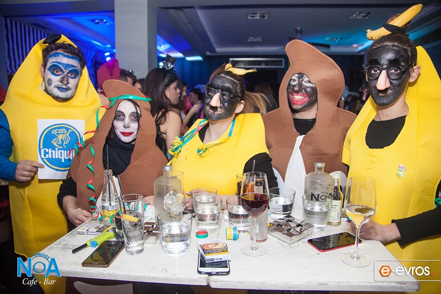 Είδαμε τις πιο απίθανες μάσκες, στολές αλλά και ζωγραφιές μιας και δεν υπήρχε συγκεκριμένο θέμα και οι θαμώνες είχαν την ευκαιρία να αυτοσχεδιάσουν, φορώντας ότι πιο "τρελό" τους ήρθε στο μυαλό.