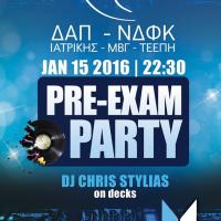 Η ΔΑΠ – ΝΔΦΚ Ιατρικής – ΜΒΓ – ΤΕΕΠΗ διοργανώνει την Παρασκευή 15 Ιανουαρίου στο Κυβερνείο "Pre – exam party". Στα decks θα είναι ο αγαπημένος σε όλους dj Stylias. Την Παρασκευή λίγο μετά τις 22:30 στο Κυβερνείο της διασκέδασης θα γίνει χαμός, ανεβασμένη διάθεση...