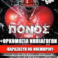 Αυτή την Παρασκευή 06 Νοεμβρίου αγαπάμε, πονάμε και ερωτευόμαστεκαι η μόνη επιλογή μας... είναι το Prive club! Μια βραδιά με πολύ ελληνική και ερωτική μουσική μέχρι τελικής πτώσεως... Μαζί μας θα διασκεδάζουν και οι "ορκισμένοι" Νηπιαγωγοί! Απαραίτητα συστατικά της βραδιάς:Special...