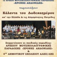 Το Σύνολο Παραδοσιακής Μουσικής της Μητρόπολης Αλεξανδρούπολης & το Αρχείο Μουσικολαογραφικής Παράδοσης «ΧΡΟΝΗΣ ΑΗΔΟΝΙΔΗΣ» διοργανώνουν Χριστουγεννιάτικη Συναυλία με κάλαντα του Δωδεκαημέρου από όλη την Ελλάδα και τις Αλησμόνητες Πατρίδες. Η εκδήλωση θα πραγματοποιηθεί το Σάββατο 23 Δεκεμβρίου 2017 και ώρα...