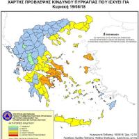 Σύμφωνα με το Χάρτη Πρόβλεψης Κινδύνου Πυρκαγιάς που εκδίδει η Γενική Γραμματεία Πολιτικής Προστασίας του Υπουργείου Εσωτερικών (www.civilprotection.gr), για σήμερα Κυριακή 19 Αυγούστου 2018, προβλέπεται πολύ υψηλός κίνδυνος πυρκαγιάς (κατηγορία κινδύνου 4) για τις εξής περιοχές: • Περιφέρεια Βορείου Αιγαίου (Λέσβος, Χίος) •...