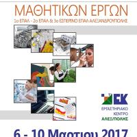Το 1ο Εργαστηριακό Κέντρο (Ε.Κ.) Αλεξανδρούπολης διοργανώνει έκθεση μαθητικών έργων η οποία θα πραγματοποιηθεί από την Δευτέρα 6 έως την Παρασκευή 10 Μαρτίου 2017 και ώρες 09:00- 13:00 στην αίθουσα εκδηλώσεων του 1ου ΕΠΑΛ Αλεξανδρούπολης (Κατακουζηνού 16). Την...