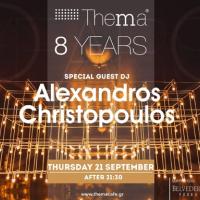 To Thema Coffees & Drinks Culture κλείνει 8 χρόνια επιτυχημένης πορείας στο χώρο της διασκέδασης και το γιορτάζει με ένα super γενέθλιο πάρτυ. 8 χρόνια γεμάτα μουσική, εκπλήξεις, πρωτοποριακές γεύσεις και ωραίες στιγμές! Για όλα αυτά αλλά και για άλλα πολλά...