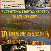 Το «ΕΥΓΕΝΙΔΕΙΟ» Κέντρο Πολιτισμού του Δήμου Διδυμοτείχου σε συνδιοργάνωση με τον Ιστορικό και Πολιτιστικό Σύλλογο Διδυμοτείχου «ΚΑΣΤΡΟΠΟΛΙΤΕΣ-Γνώση και Δράση», σας προσκαλεί στις "ΒΥΖΑΝΤΙΝΕΣ ΓΙΟΡΤΕΣ ΚΑΣΤΡΟΥ ΔΙΔΥΜΟΤΕΙΧΟΥ-2018" (Καλέ Πανηγύρι) από 24 έως 29 Μαΐου 2018. ΠΡΟΓΡΑΜΜΑ ΕΚΔΗΛΩΣΕΩΝ Πέμπτη 24/5/2018 και Παρασκευή...