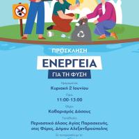 Με αφορμή την Παγκόσμια Ημέρα Περιβάλλοντος ο Δήμος Αλεξανδρούπολης και η Δημοτική Ενότητα Φερών σε συνεργασία με το ΔΕΣΦΑ (Διαχειριστή Εθνικού Συστήματος Φυσικού Αερίου) και τον Περιβαλλοντικό Οργανισμό We4all, διοργανώνουν εθελοντική δράση καθαρισμού του περιαστικού Άλσους της Αγίας Παρασκευής, την...
