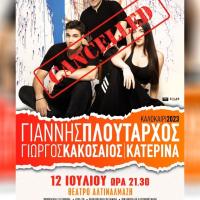 Ακυρώθηκε η συναυλία του Γιάννη Πλούταρχου στην Αλεξανδρούπολη!