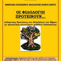 O Σύνδεσμος Φιλολόγων Νομού Έβρου σας προσκαλεί στις Ημερίδες ανάδειξης του έργου των Φιλολόγων του Νομού μας την Παρασκευή 24 Απριλίου 2015 και ώρα 18.00 στο 3ο Γυμνάσιο Αλεξανδρούπολης και το Σάββατο 25 Απριλίου 2015 και ώρα 11.00...