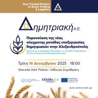 Η Δημητριακή Α.Ε. παρουσιάζει τη νέα Μονάδα Επεξεργασίας Δημητριακών στην Αλεξανδρούπολη