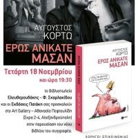 Το βιβλιοπωλείο "Ελευθερουδάκης - Φωτεινή Σκαρλακίδου" και οι εκδόσεις "Πατάκη" σας προσκαλούν στην παρουσίαση του νέου βιβλίου του Αύγουστου Κορτώ, " Έρως Ανίκατεν Μάσαν". Η βιβλιοπαρουσίαση θα πραγματοποιηθεί την Τετάρτη 18 Νοεμβρίου 2015 και ώρα 7:30μ.μ. στο Art Gallery - Αθανασία...